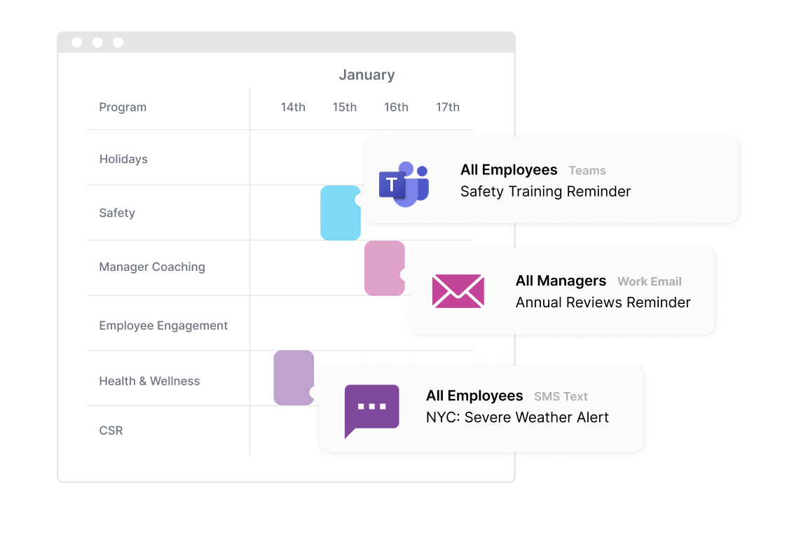 Our automation engine allows you to schedule, personalize, and trigger key messages based on employee milestones, like onboarding, anniversaries, and manager transitions.