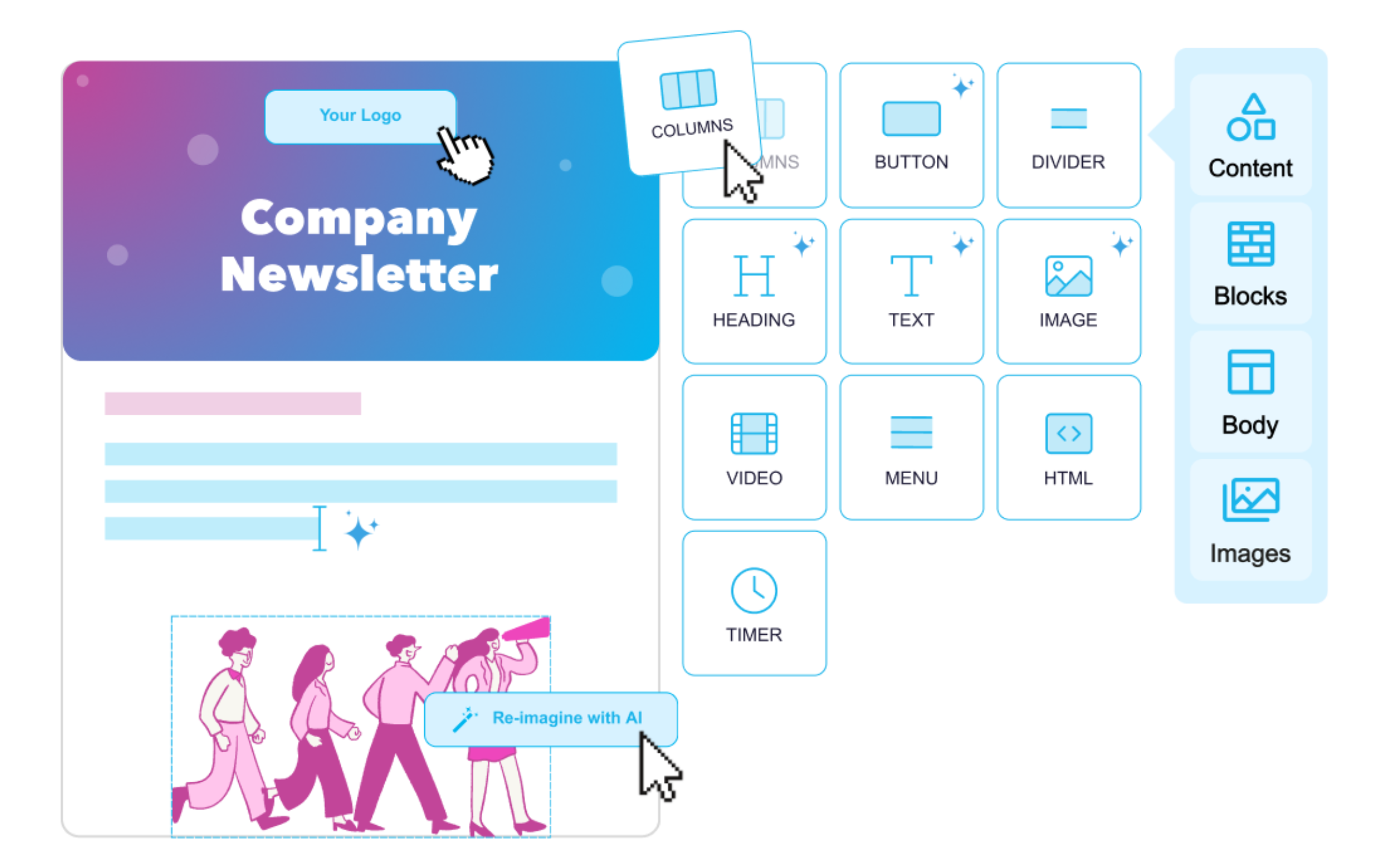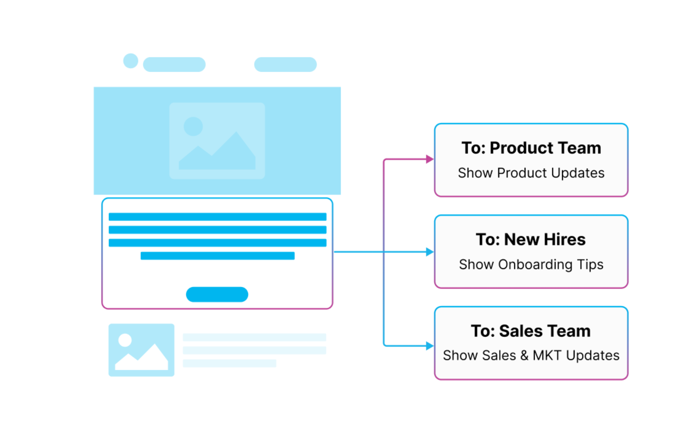 Say goodbye to internal newsletter tools. Build stunning, mobile-friendly newsletters that match your brand and deliver them via Slack, Teams, SMS, or email.