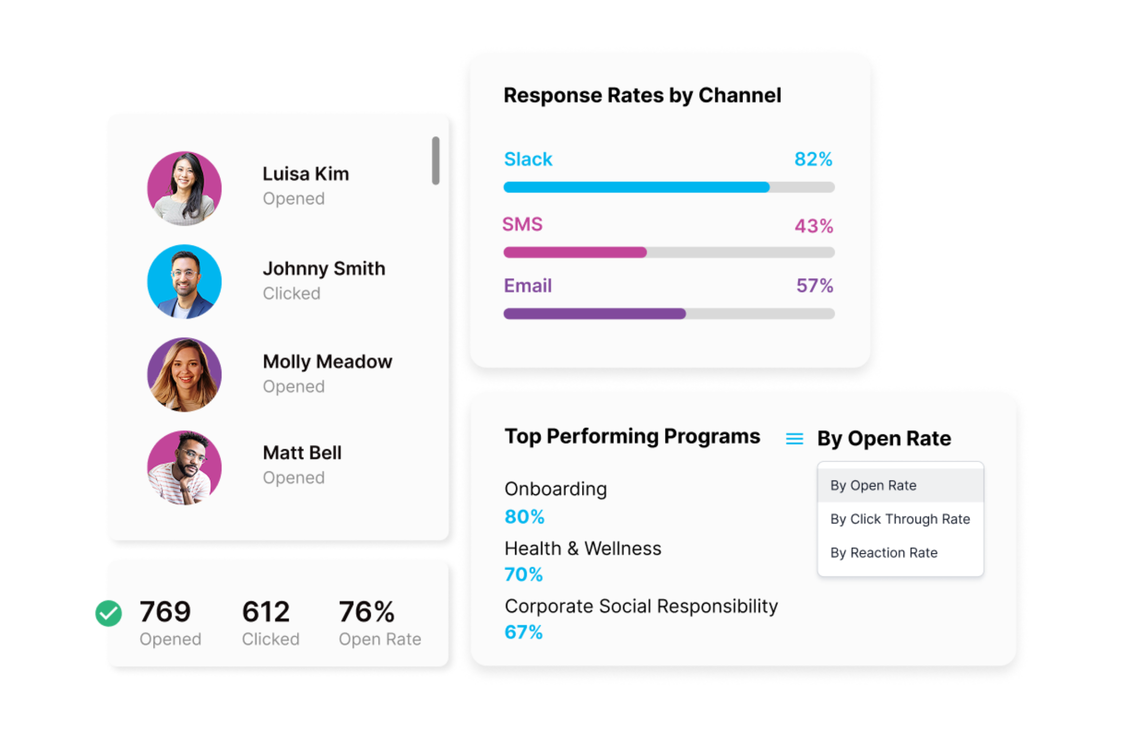 No more guessing. Track opens, clicks, and completions by shift time, plant location, or delivery method—so you know exactly where to follow up.